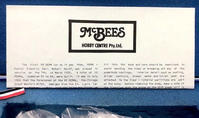 D.E.R.M. VR BLUE RM58 -BRASS MODELS McBees Hobby Centre - Victorian Railways. "D.E.R.M" Victorian Railmotor. FREE POST