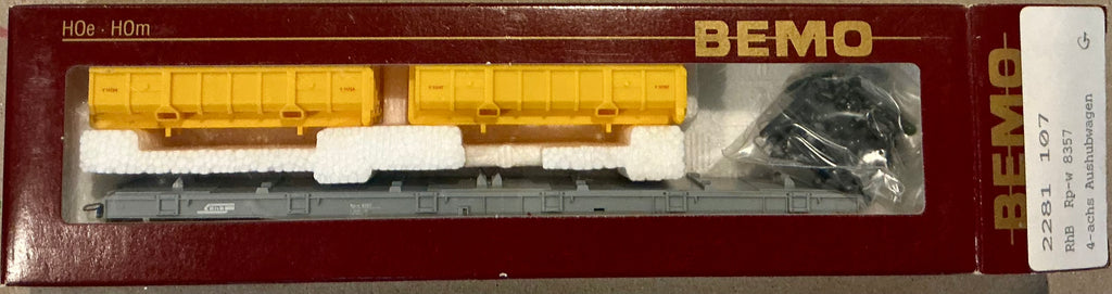 BEMO H0e 9mm 2281-107 RhB Rp-w 8357 4 - aches Aushubwagen - RhB Railway Narrow gauge (new PRE-OWNED) HOe 9mm