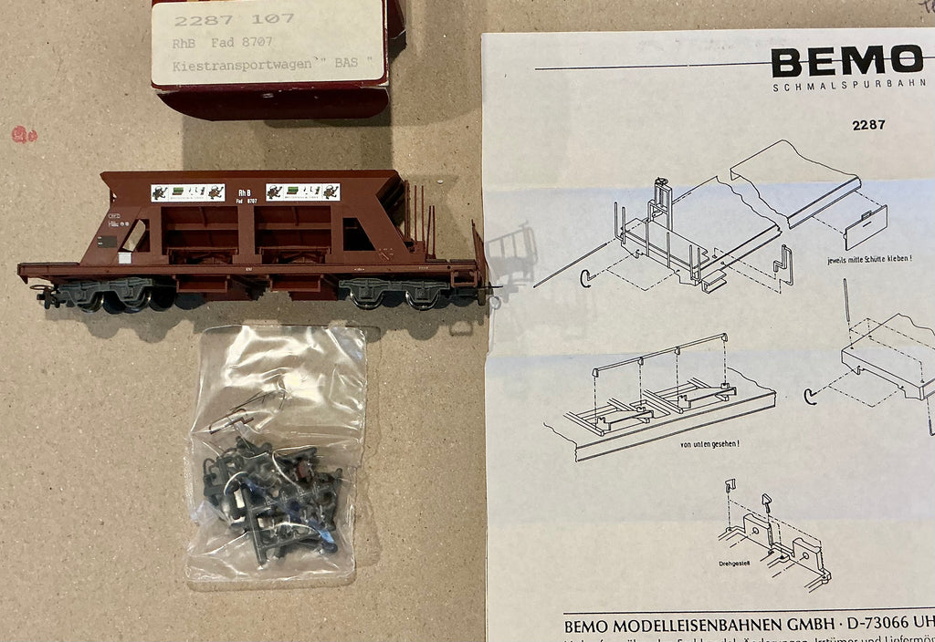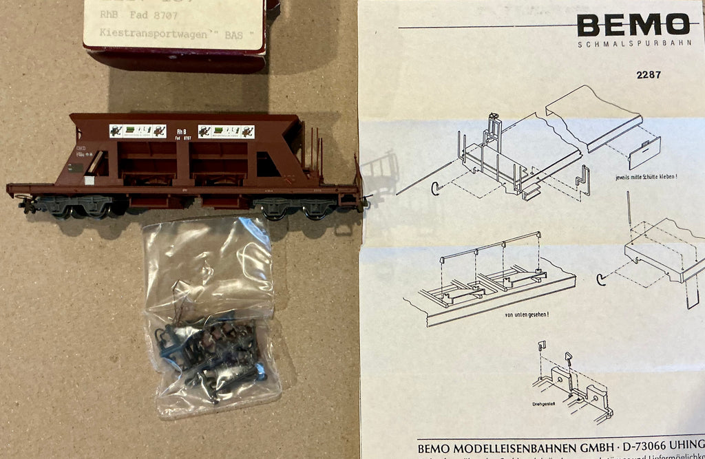 BEMO H0e 9mm 2287-107 - Fad 8707 Kiestransportwagen “BAS” RhB Railway Narrow gauge (PRE-OWNED) HOe 9mm