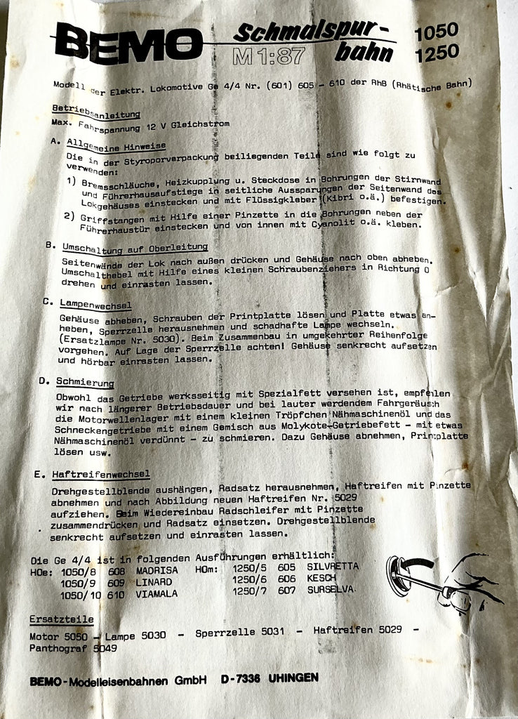 Bemo HOe Schmalspur Bahn RhB Silvretta Electric Locomotive