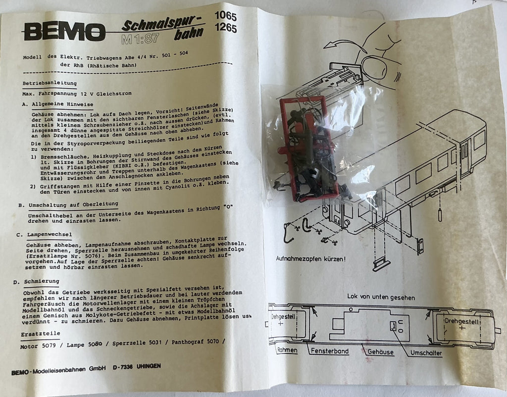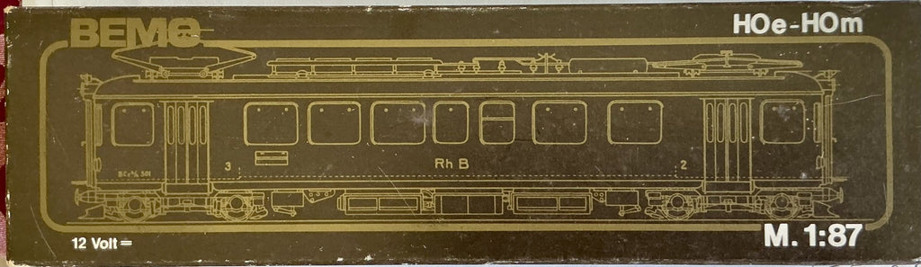 The BEMO 1065-2 refers to a specific model of an ABe 4/4 electric railcar from the Rhaetian Railway (RhB) in Switzerland. As part of the BEMO model train collection, it is a detailed, narrow-gauge model designed for permanent layouts rather than temporary "carpet" setups. The "HOe 9mm" designation specifies the scale (HO) and narrow track gauge (9mm)
