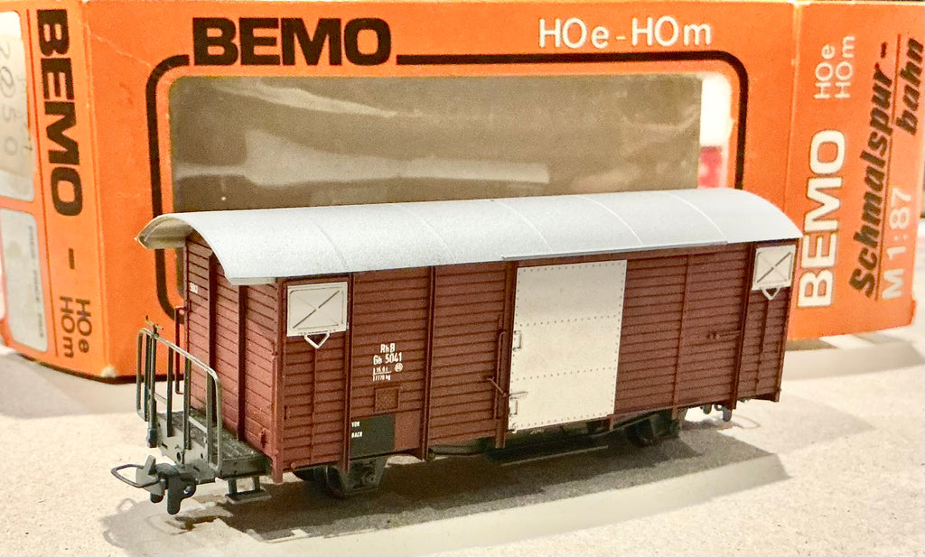 BEMO H0e 9mm #2050 RhB Gb 5041 Gedeckter Guterwagon of the RhB Railway Narrow gauge (PRE-OWNED) HOe 9mm