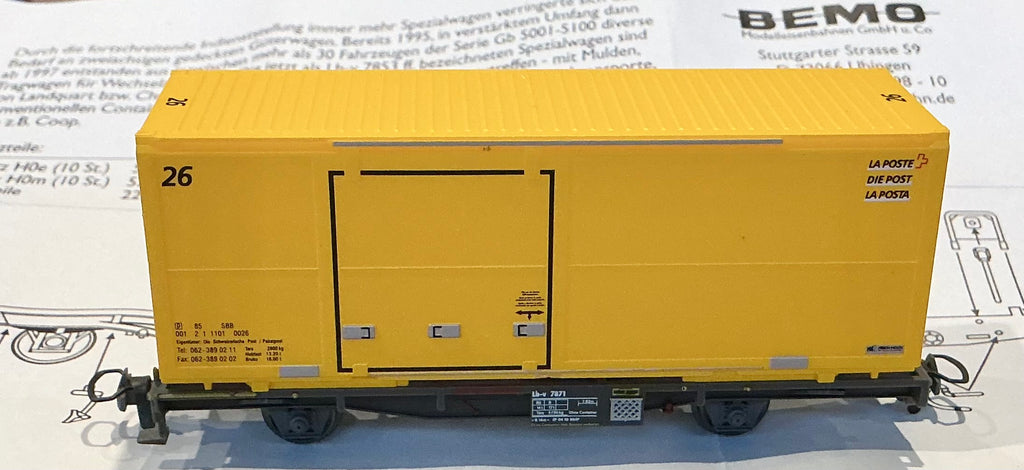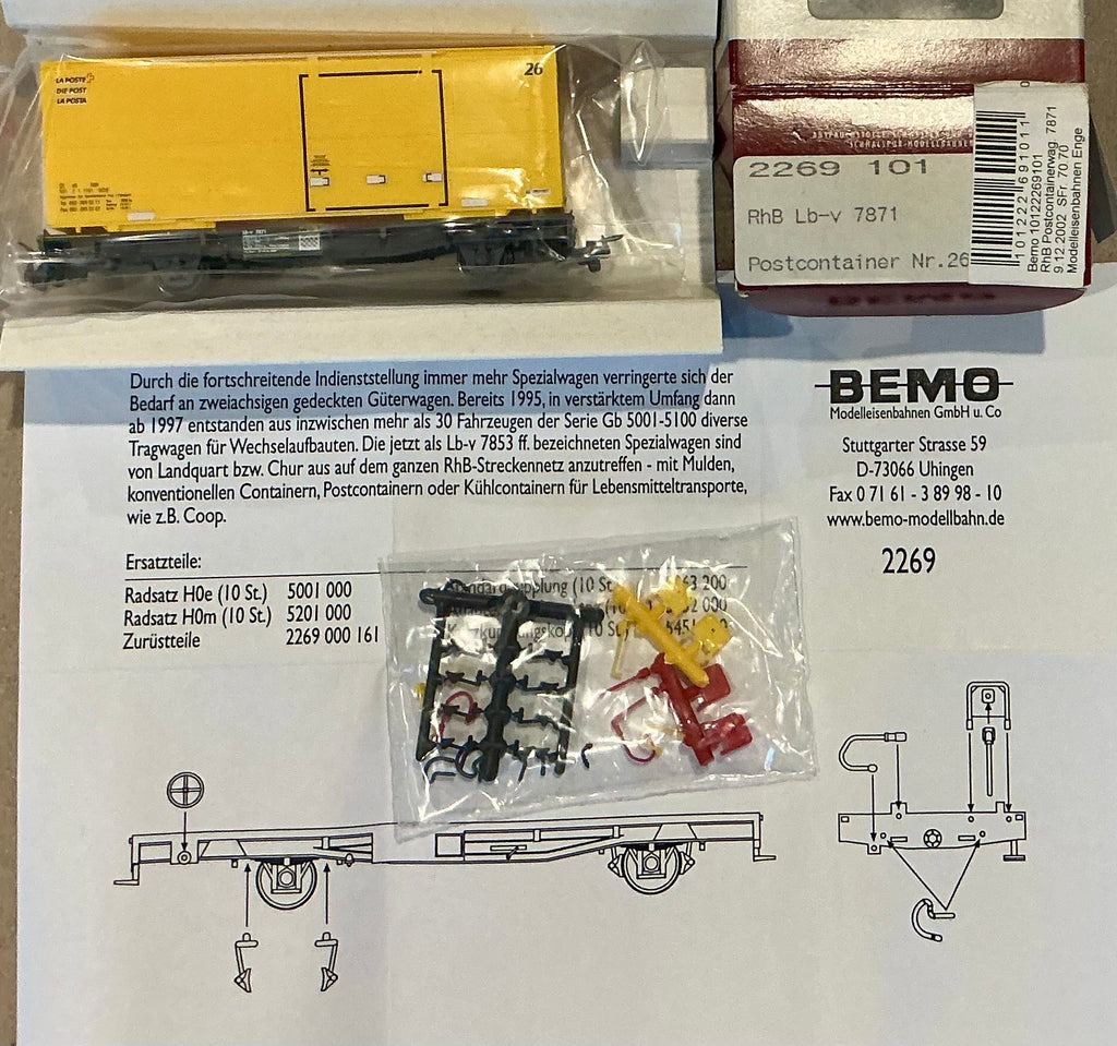 BEMO H0m 12mm #2269 101 RhB Lb-v 7871 Postcontainer Wagon of the RhB Railway Narrow gauge (PRE-OWNED) HOm 12mm