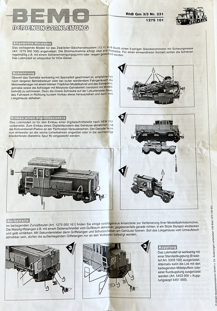 Bemo 1275 101 H0m Metal Series Diesel Locomotive GM 3/3 No. 231 RhB