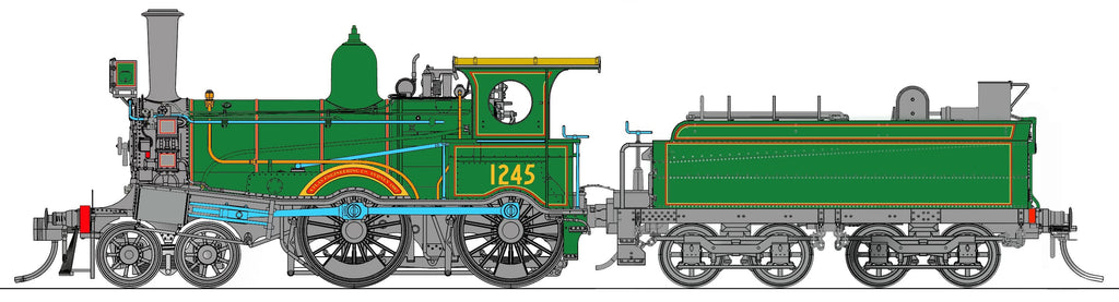 V2 - Z12 1245 "Lined Brunswick Green" with Cowcatcher and Baldwin Bogie Tender, - DCC SOUND Model